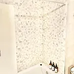 Das Apartment verfügt über ein Badezimmer mit einem Haartrockner und Badelaken. Außerdem gibt es eine getrennte Toilette und eine Waschmaschine usw.